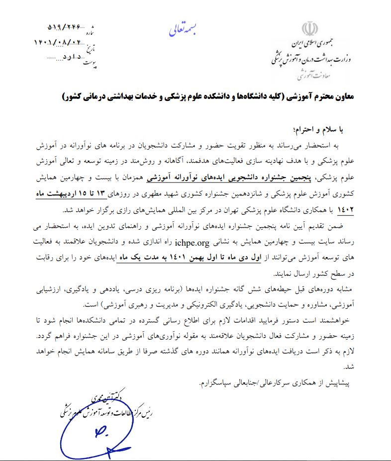 پنجمین جشنواره دانشجویی ایده های نوآورانه آموزشی